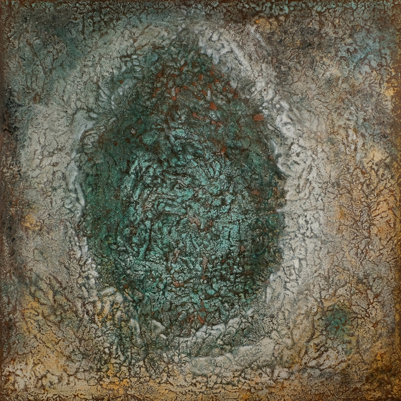 Island (2017) Eisenocker, Pigmente, Leinwand, 100 x 100 cm