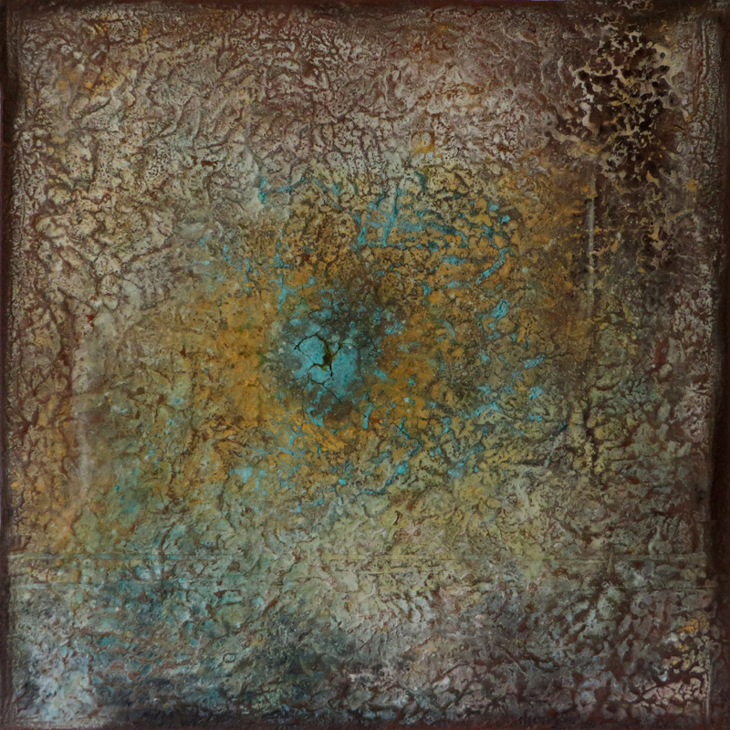 Island (2017) Eisenocker, Pigmente, Leinwand, 100 x 100 cm