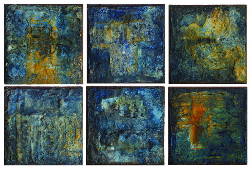 Island (2018) Eisenocker, Marmormehl, Pigmente, Leinwand, 20 x 20 cm