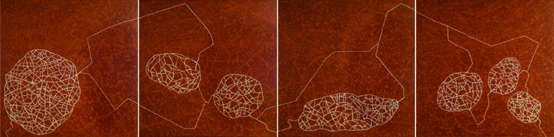 Zellen (2015) Eisenocker, Pigmente, Leinwand 4-teilig, 100 x 400 cm
