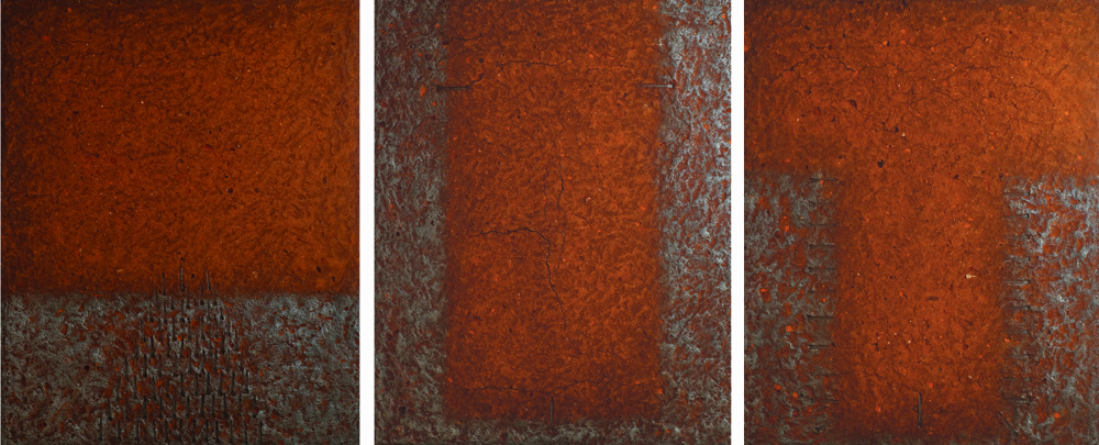 Eisenocker, Grafit, Leinwand, 3-teilig, 100 x 80 cm